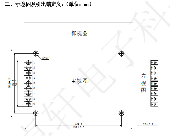 管腳定義:未注尺寸公差按GB/T1804-2000 m級,鋁殼,表面氧化處理