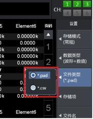 第四,文件類型中有“PAD”和“CSV”兩種格式,其中“PAD”格式文件需要通過PAM上位機(jī)軟件打開才能分析,“CSV”格式文件可以直接用Excel打開。此外“PAD”格式的文件也可以在機(jī)器本地進(jìn)行回讀分析;