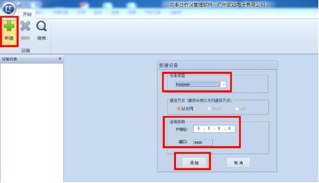 第一打開軟件,新建一個(gè)設(shè)備類型,選擇對(duì)應(yīng)機(jī)器型號(hào),如僅進(jìn)行離線分析,則無需設(shè)置IP信息;