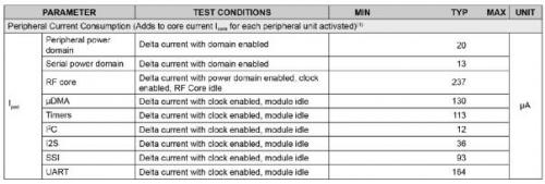 圖2顯示了TI CC2650MODA系列中可用外設的功耗。盡管各種設備消耗的電流非常小—僅幾十或幾百微安的程度—但是禁用這些設備可能會產生重大影響。如果不需要進行串行連接,則可以節省總共318μA。雖然可能看起來不太多,但是這個電流變化會對電池壽命產生重大影響。