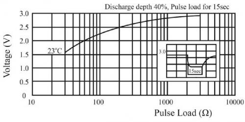 物聯網應用使用脈沖電流。處理器和傳感器可以抽取幾毫安的短脈沖電流,然后切換到低功耗模式并維持很長時間。使用脈沖電流會導致輸出電壓下降。圖3顯示即使2mA的脈沖負載也會使CR2032的輸出從3V下降到2.2V左右。