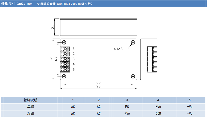輸出電壓:DC3.3V/05V/12V/15V/24V/28V/48V/110V/220V